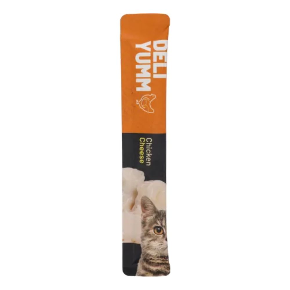 Verwen je kat met onze Deli Yumm pasta met kip & kaas! Een heerlijke vloeibare snack zonder toegevoegde suikers en glutenvrij. Smeer het op onze Flamingo likmatten voor extra verwennerij!